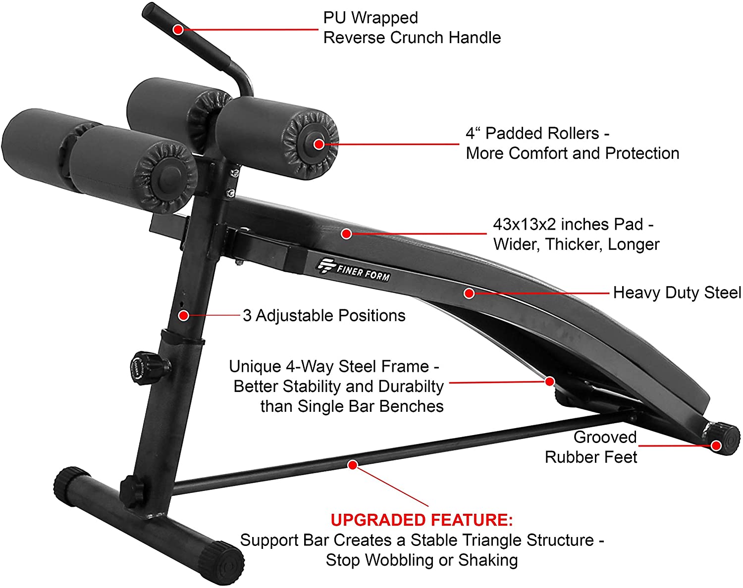 Finer Form Sit Up Bench With Reverse Crunch Handle For Ab Bench Exercises Abdominal Exercise Equipment With 3 Adjustable Height Settings Black Walmart Com